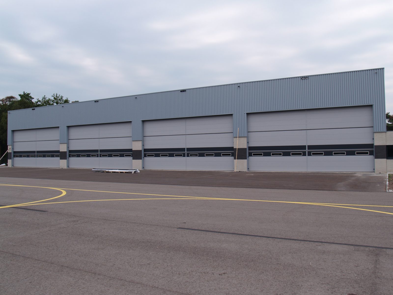 Les aéroports abritant des jets privés et des hélicoptères de valeur, les chantiers navals pour yachts de luxe ou les sites militaires ne sont que quelques exemples où ces grandes portes de hangar basculantes ou coulissantes sont utilisées. Pour donner une idée des possibilités : des dimensions de 17 000 mm de large et 6 500 mm de haut peuvent être réalisées, avec des éléments spécifiques au projet tels que des fenêtres ou un revêtement esthétique.